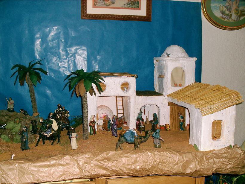 Me gusta el planteamiento, los materiales son tradicionales y me recuerda a esos primeros belenes que todos comenzamos a hacer, si con el tiempo sustituyes el papel de embalar por otro material para hacer las rocas, tu belén cambiará totalmente, seguro que para el proximo año encuentras en este foro un montón de ideas y técnicas para poder aplicar. Que suerte disponer de tanto sitio para poner el belén.