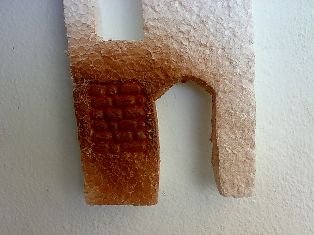 • Si el porexpán es de 2 cm y lo que extraes lo cortas por la mitad para embutirlo (no sé si se dice así), el hueco que queda es de 1 cm. Sin embargo las piedras y ladrillos son de 15 mm.