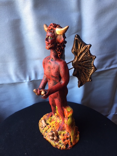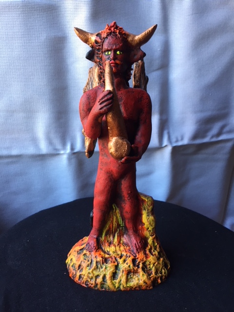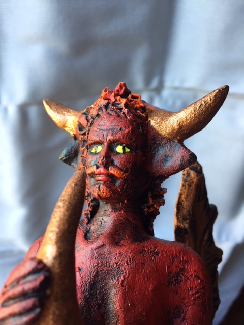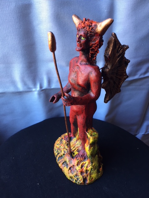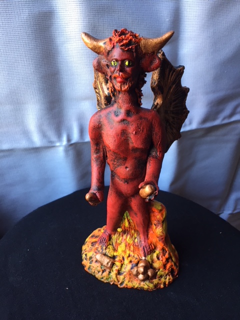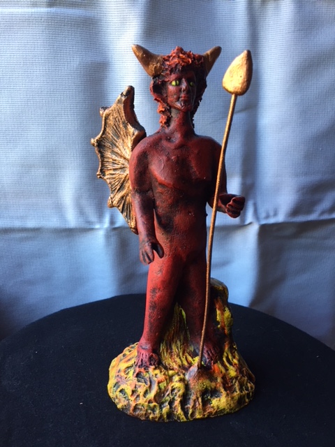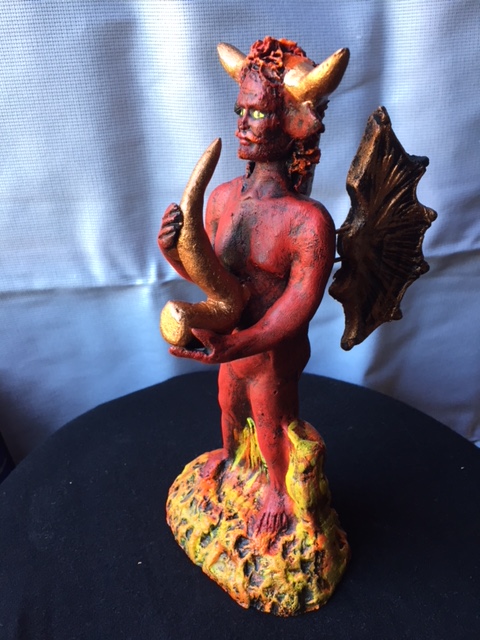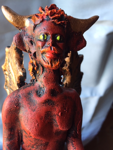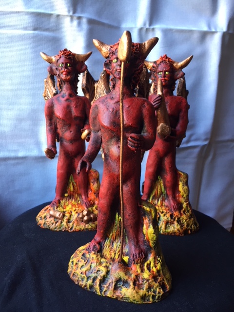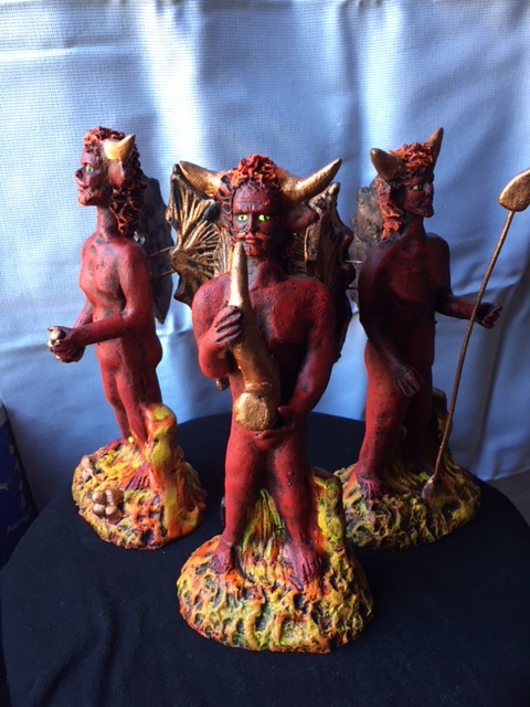 Esta vez, les dejo, mis demonios o diablos, de unos 20 cm de altura aproximadamente, son de barro, modeladas con moldes y también hechas a mano, quemadas en horno de leña y pintadas con acrílicos y oro tono cobre.