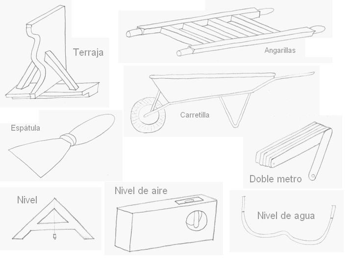 traigo aquí ahora unos dibujitos sobre herramientas usadas en albañilería, que espero vayáis ampliando.