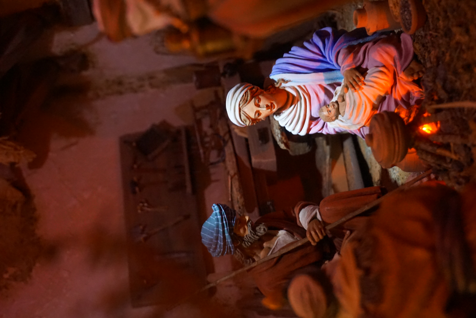 Hermosa combinación de diferentes escenas, figuras de varios autores, y tonos de luz, para configurar un espléndido belén.