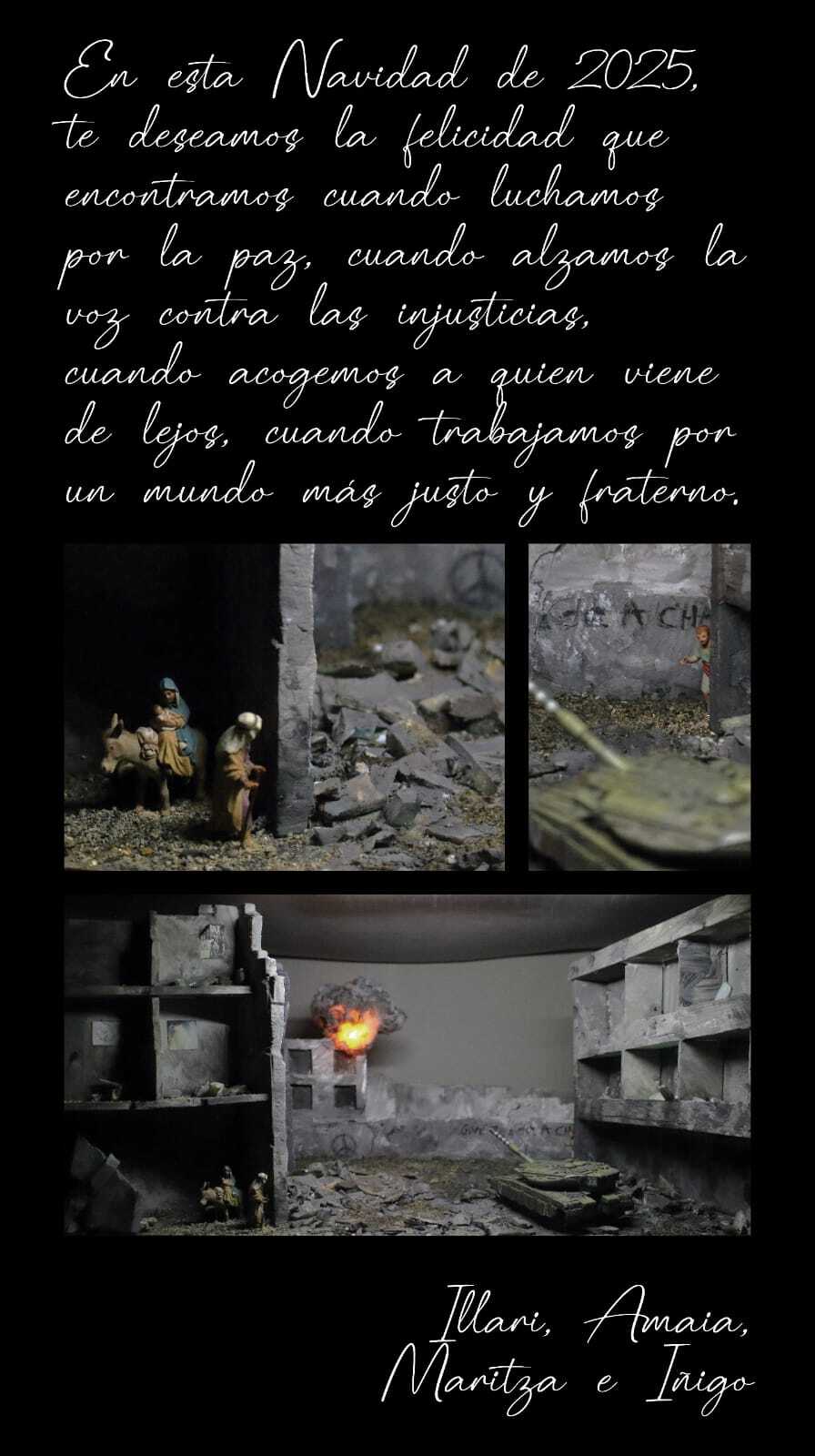 Quería transmitir el peligro y la desolación, pero el mensaje navideño debe ser de esperanza, de fe en la humanidad, Frente a las explosiones destructivas hay chispas de solidaridad. Alguien, desde la otra esquina, les indicaba el camino a seguir: