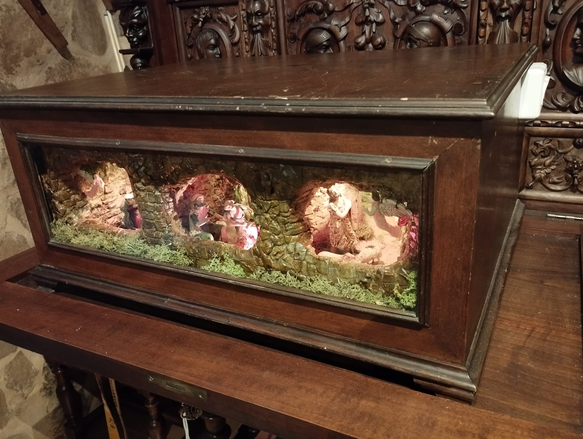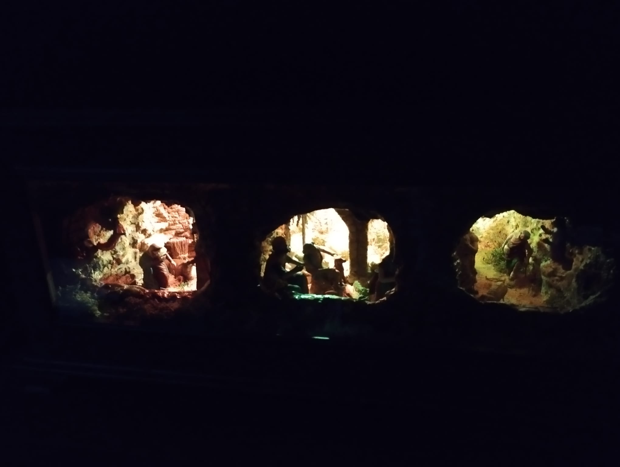 Las figuras del primer plano son figuras de la firma ortigas de 10 cm, en un segundo plano hay figuras de 6 cm de la misma firma, en un tercer plano las figuras son de cm o inferior.