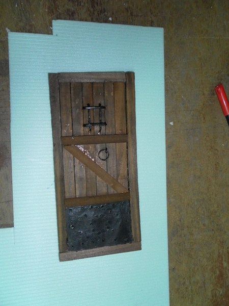 Mientras, preparamos la tapia trasera que se ve detras de la ventana y de la puerta, marcando algo mas de lo que se ve atraves de ellas (12), se marca el cuadro maximo y a la altura a la que van la ventana y la puerta (13), y se van poniendo los lugares donde van los desconchados (14), y se rebeja 0,5 cm. cada uno, se cortan ladrillos de 1,5 cm. X 0,5 cm. X 0,5 cm. (15), se van pegando los ladrillos (16)(17)(18), y se van preparando todos (19), una vez seco se va poniendo el pegamento de escayola, se va cogiendo por la parte de abajo de la paletina y se va hechando de dentro a fuera, haciendo un giro de muñeca (20)(21)(22), y se le va dando forma, incluso las grietas (23), siempre se le va dando forma, intentando que no quede cuadrado, que sea amorfa (24), se deja que se seque y sigue (25)(26)(27)(28).