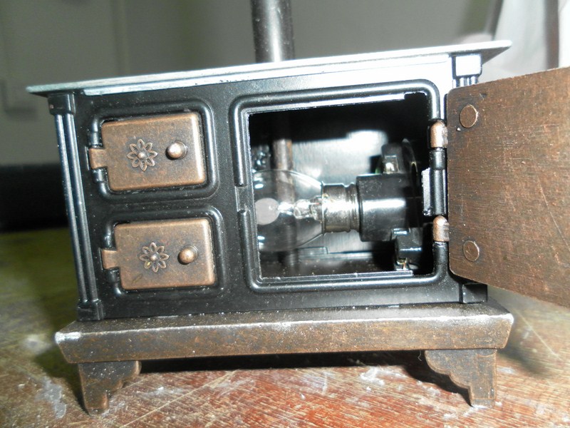 Bueno, a continuacion voy a poner algunas de los enseres que iran en la casa, hecho por la compañera Socorro, en el curso de miniaturas: mesa para el salon (1)(2)(3), una lampara de techo (4)(5)(6)(7)(8), la puerta que sera vista por los dos lados (9)(10), y una hornilla de fogon, a la que la hemos puesto una lampara de vela, que de el efecto de fuego (11)(12).