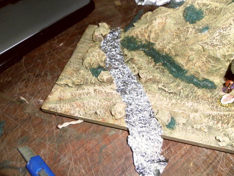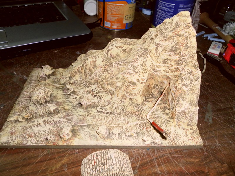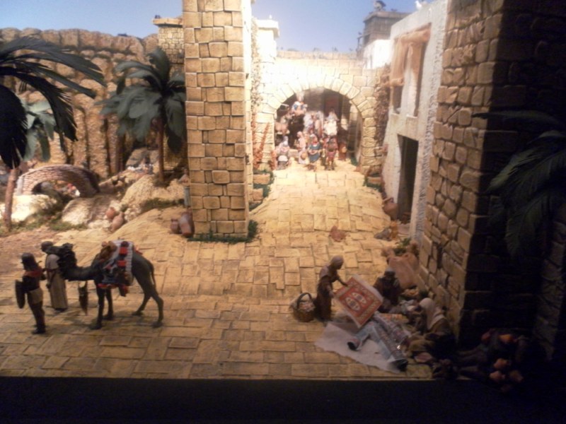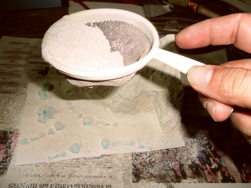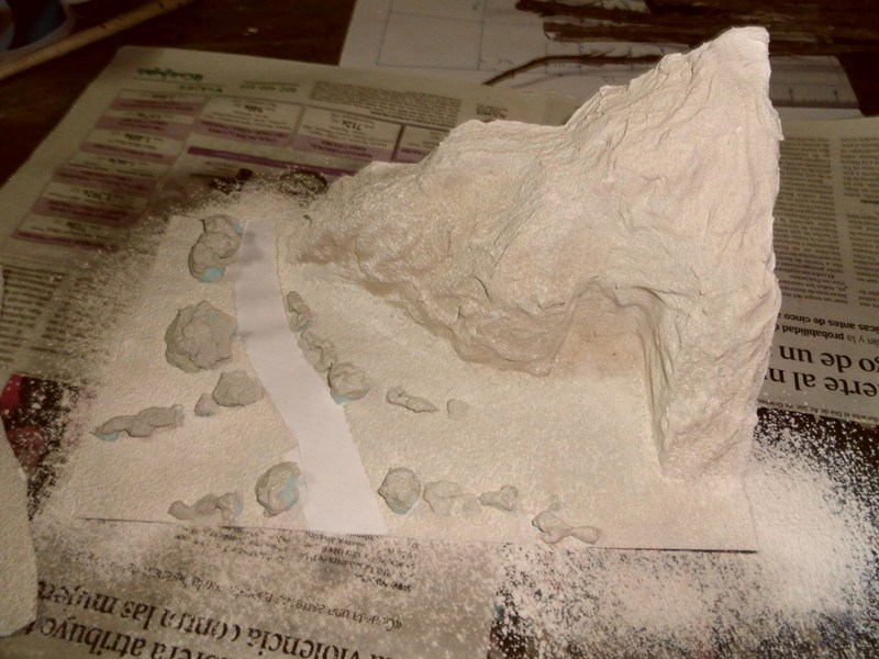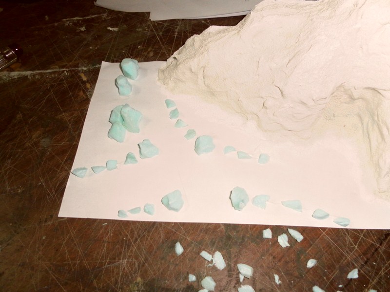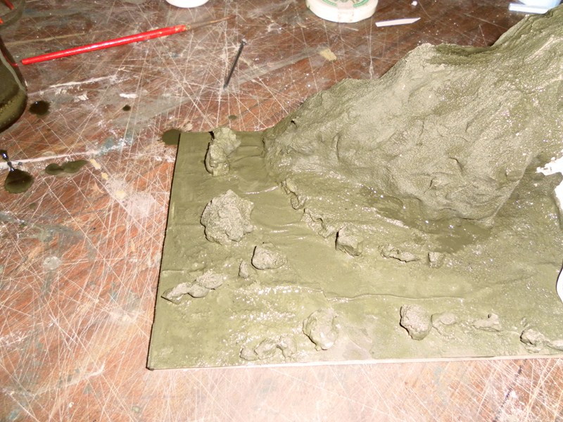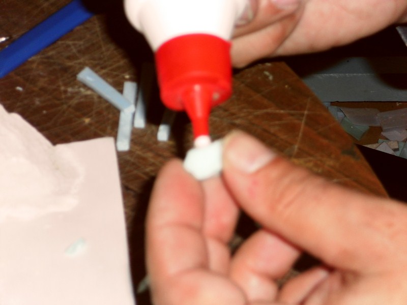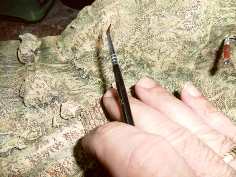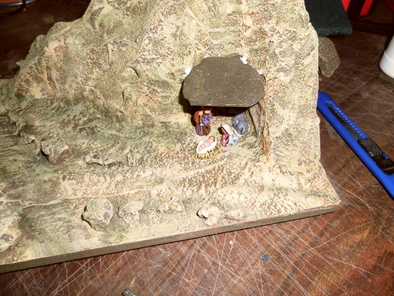 Aqui tengo a mis niñas con la tarea (1), de una plancha de porex del denso de 4 cm. sacamos unas tiras de 1/2 cm. de ancho, y se marcan a 4 cm. para sacar lozas de 4 X 4 X 0,5 cm. (2)(3), tambien se puede cortar una tira de 4 X 4 cm. he irla cortando a 1/2 cm. que daria el mismo resultado. Cuando se tenga una cantidad considerable, se comienza a pegar formando el suelo, se comienza en una esquina, poniendo la primera justo en la union de las dos lineas que se han marcado para saber donde ira la pared, entre loceta y loceta se deja una pequeña llaga, o separacion, todas las locetas que van junto a las lineas deven de ir a ras de ellas, que sera donde apolle luego la pared (4)(5), se ponen todas las lozas hasta completarlo (6), y se deja secar bien, es totalmente imprescindible que esten bien seca la cola, para que a la hora del siguiente paso no se nos estropee el trabajo. A continuacion preparamos una pelota de pegamento de escayola espesito, y se rellena las llagas, asegurandose que no queden agugeros sin escayola, con un trapo humedo con el que se hace en forma de muñequilla, se lava toda las partes de arriba de las lozas, respetando las llagas, que se deve de quedas a la altura de la loza mas baja. Se espera que seque todo bien y con un taco de lija, se le pasa en circulo para que no haya muchos tropezones, pero que no quede como una tablas, respetando algunos desniveles (7). A continuacion hay dos formas de pintarlo, una pintar el fondo de verde y otra pintar el fondo de marron; yo lo hago de la siguiente forma: el verde lo utilizo para el exterior, que siempre hay mas verdina que en el interior. Y marron en el interior que las llagas se vean sucias pero no con verdina (8). Como el proceso de pintado no lo he documentado en fotos, pondre fotos del suelo de hace dos años de mi belen, solo que es un exterior. Empezamos dando con la brocha un poco cargada de rojo turco, puntazos por diversas partes, y seguidamente se descarga la brocha, y a pincel seco se la da un barrido a todo pero sin abusar (9). A partir de este momento todas las manos son a pincel seco y barrido. A continuacion mezclamos el rojo con albero (albero es amarillo intenso, o amarillo oscuro), en el que predomina el rojo (10), y se le va dando mas manos de mas rojo a menos rojo, y de menos albero a mas albero (11), mas o menos 4 ó 5 manos asta llegar a albero solo, que se le da una mano, tras el albero a esta se la agrega blanco, igualmente, de mas albero a menos albero y de menos blanco a mas blanco, teniendo en cuenta que deve quedar un tono amarillento y no blanquinoso (12)(13), para conseguir el color deseado, se deve poner un tono mas bajo del que desea, ya que al final se le da una mano muy muy suabe de blanco o blanco roto, para dar volumen y brillo a las lozas (14), resultado final (15).