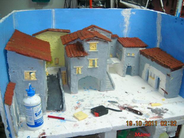 Hola Mame y Andrés, hemos tenido que esperar para ver el diorama pero ha merecido la pena; es precioso, me encanta como os ha quedado el conjunto de las construcciones y es hermosa la escena del nacimiento con el misterio y los reyes que hizo Mame, todas las figuritas que os hemos visto realizar estan estupendas ya colocadas en su lugar.