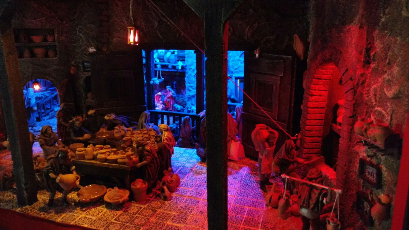 Un año más os dejo algunas fotos de mi belén. Este año he realizado, por primera vez, un diorama que representa el interior de una alfarería, a través de cuyo ventanal se ve el pesebre y una calle por la que vienen los Reyes. Espero que os guste.