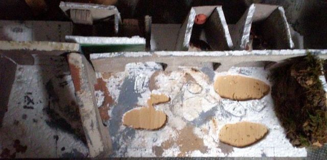 Por simple que parezca no quiero dejar esto sin nombrar, pues aunque en este caso no sea relevante, es importante ser coherente con la realización de distintos terrenos, ya sean de campos, calles, interiores... sólo recordarlo. Decir que los detalles del mismo, tales como musgos, plantas, etc. Esto es fácil, basta con líquenes, céspedes tipo ferroviario y alguna planta de acuario. De esto hay mucho escrito en el Foro.