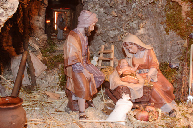 escenas, que estaban hechas con espejos, muy bonitas y muy logradas.Escenas: la huida a Egipto y otra de un pueblo, en lejania, con un paisaje maravilloso, de fondo.