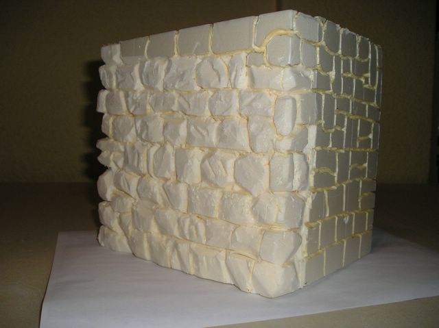 Para la realizacion del muro utilizaremos tambien la punta del soldador y con el cuters daremos cortes a las piedras para dar mas realismo ( a las de las fachadas ) los esquinas de las piedras las escacharemos con un palillo para que no queden tan en punta . ( ver la foto de arriba )