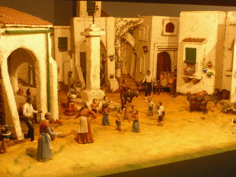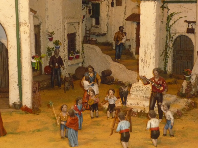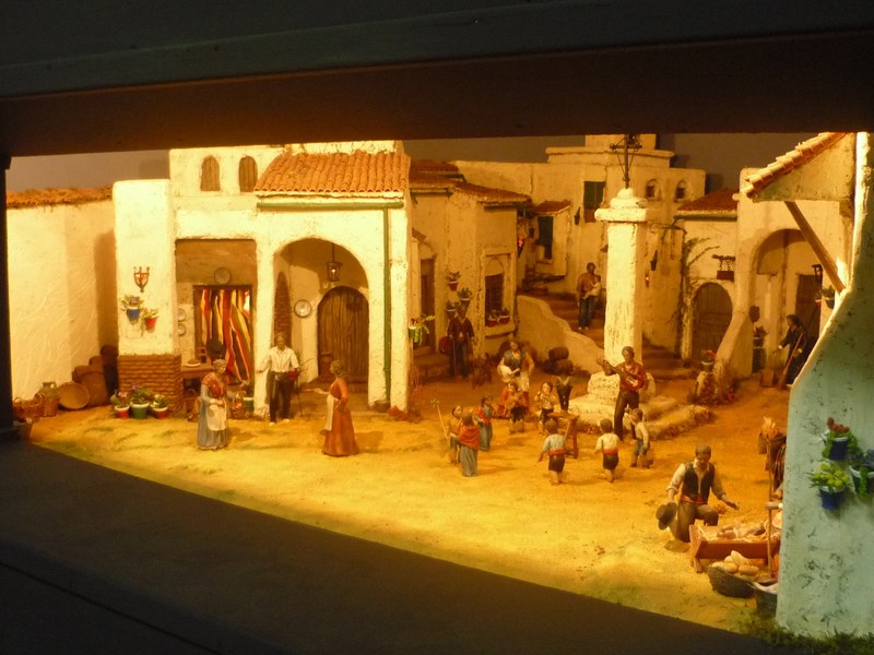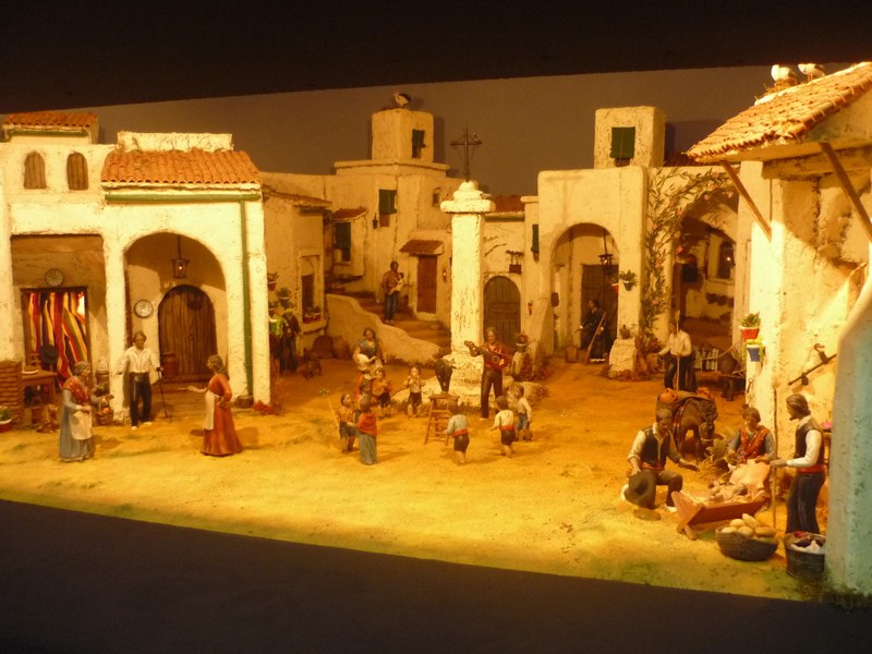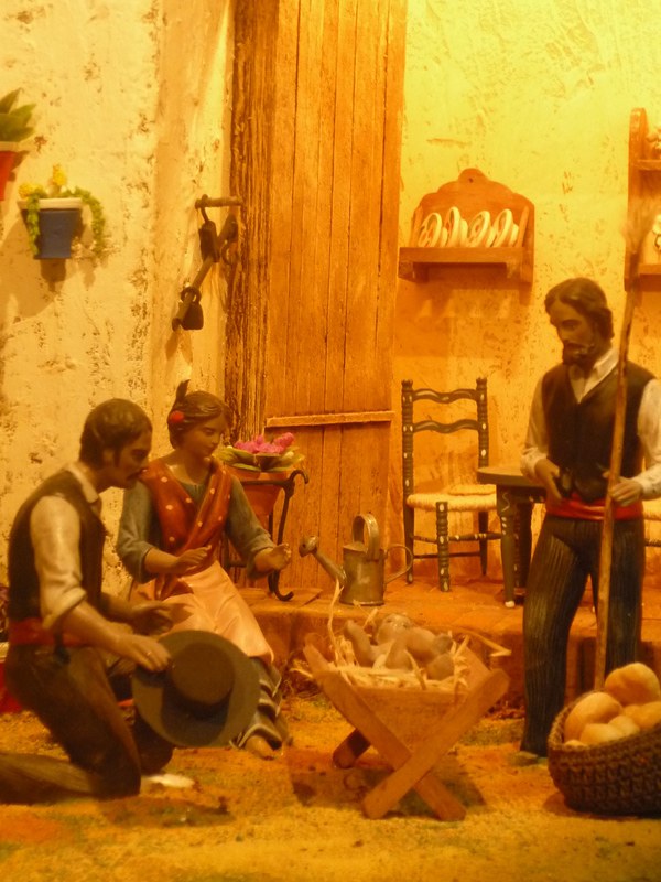 ! Que arte tiene este belén!, es muy bonito y sobre todo muy original, porque nunca habia visto ninguno tan típico. Me encantan las casas y el interior de ellas, con tantos detalles, sillas, alacenas, platos..un autentico primor, y las figuras son preciosas, supongo que os habrá costado encontrar estas figuras típicas, o ¿ las has hecho tú?. Un autentico placer ver esta gran obra, rezuma encanto y alegria por todos lados, la escena de la cabra en la escalera y los chiquillos es una preciosidad, bueno todo es lindo. Enhorabuena por el Belén. Saludos
