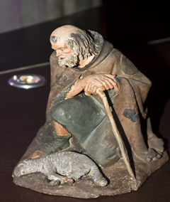 Una de las últimas incorporaciones a las vitrinas: una magnífica figura de Talarn, una suerte de pastor oferente que bien podría integrarse en un grupo de la Anunciación, la Adoración o, sencillamente, en un conjunto de pastores.