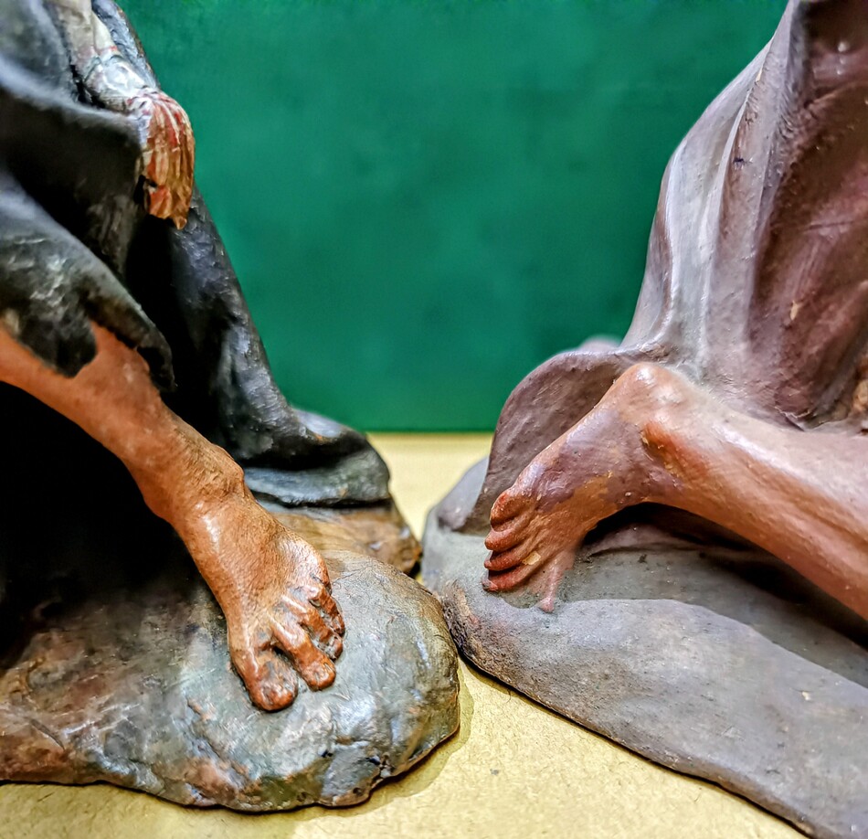 Otra curiosidad, tratándose de un pastor y siendo obra de Talarn, es la concha que porta, un detalle inusual. No puede ser un pastor cualquiera: como sabemos, en el arte este símbolo tiene un significado profundo. Al menos podría interpretarse como un pastor-viajero… quiero pensar que, de algún modo, podría representarnos. ¡Habrá que seguir investigando!