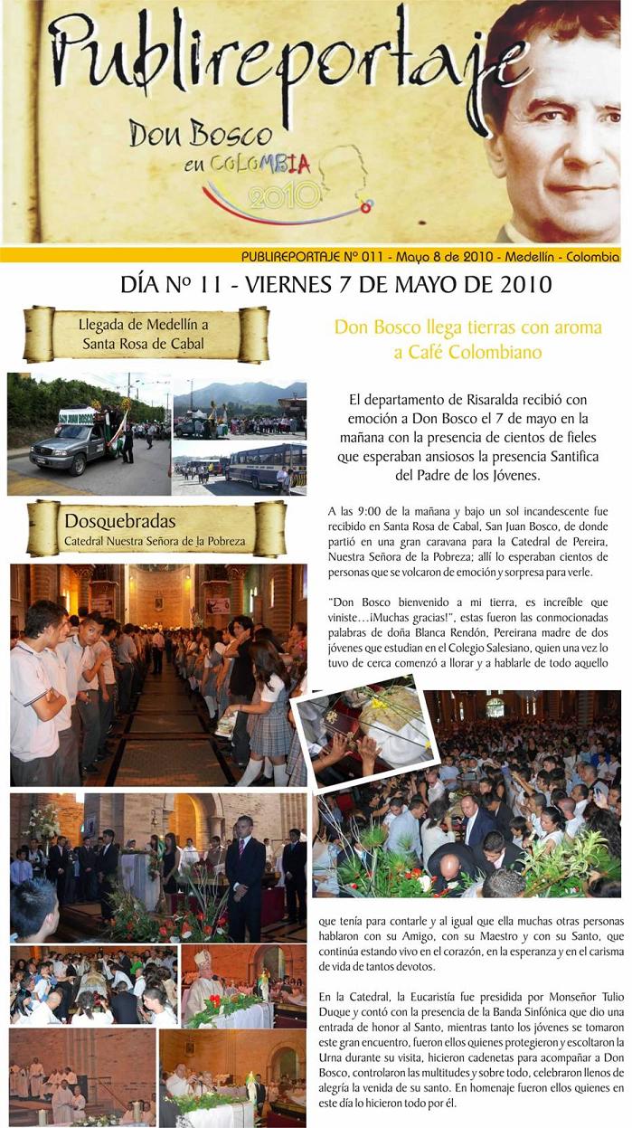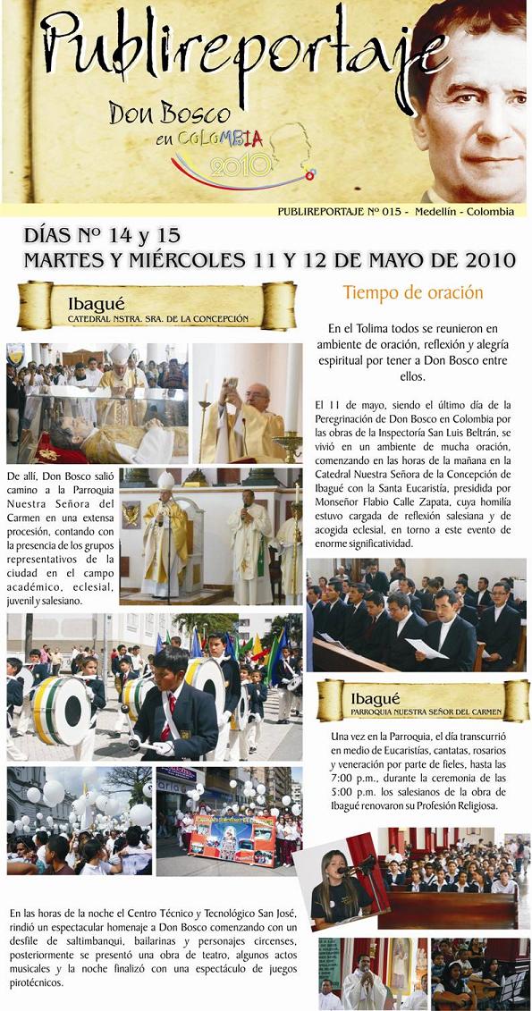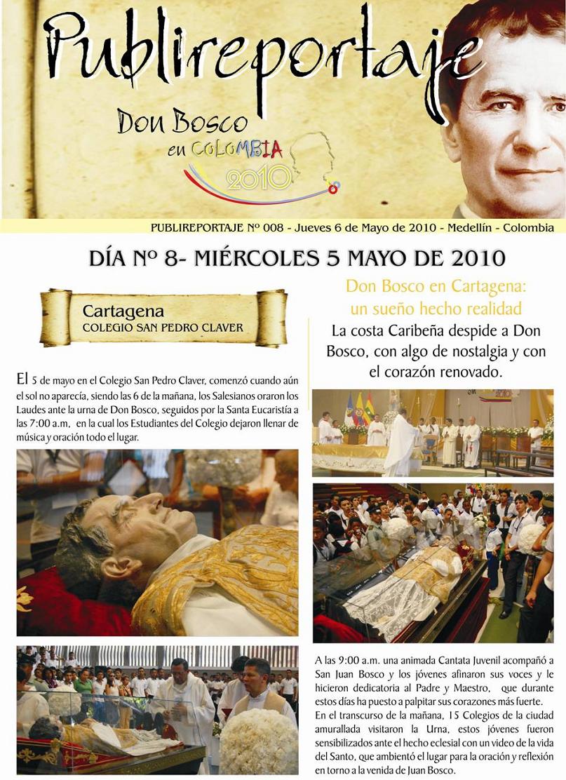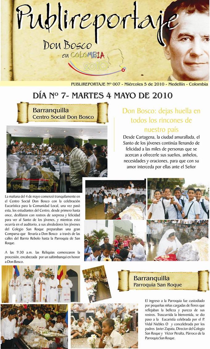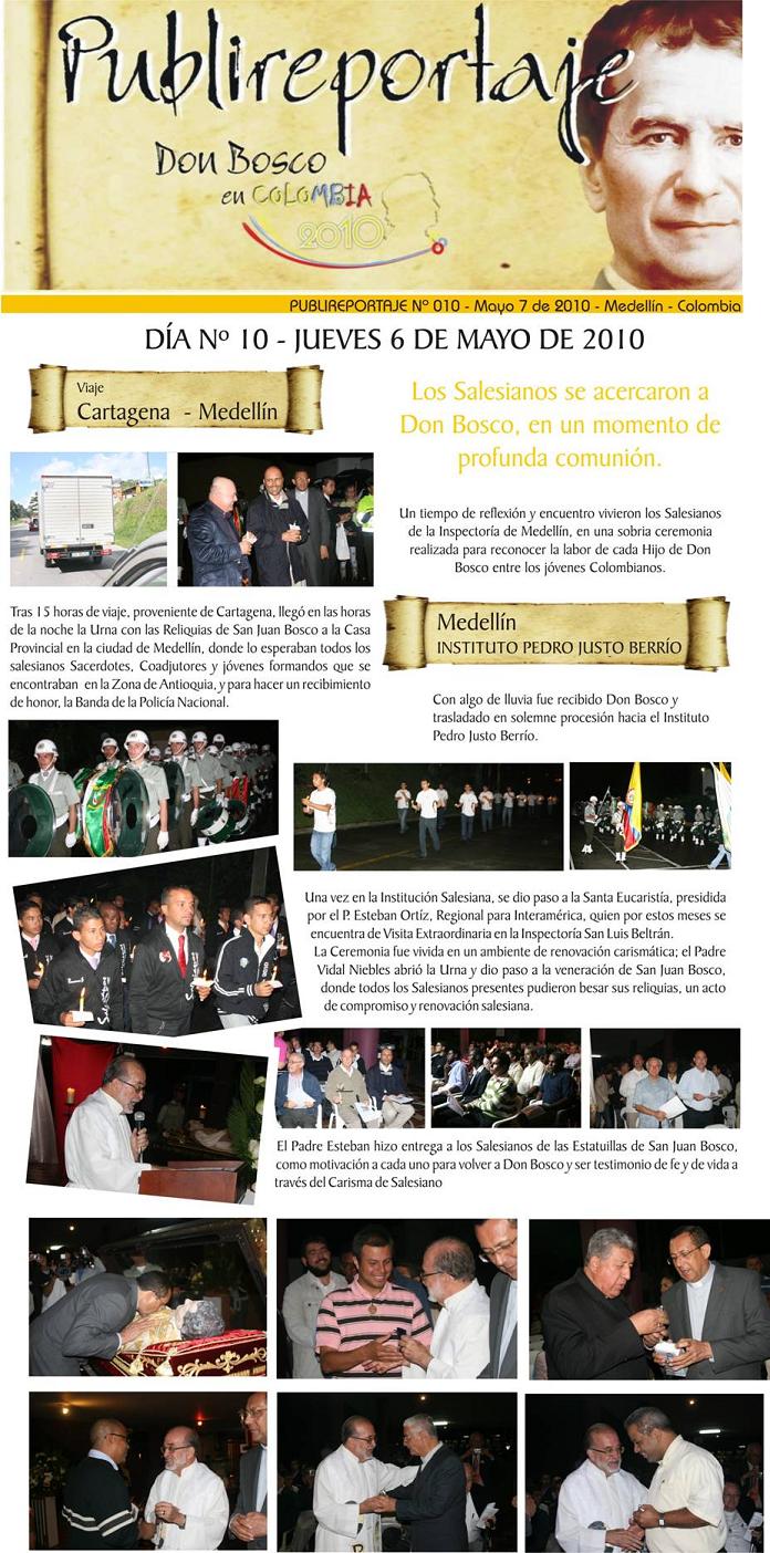 Vamos con el siguiente publireportaje del día de ayer, ya ha pasado por Cartagena de Indias y hoy está en casa Inspectorial Salesiana de Medellin, mañana estará ya más cerca de nosotros en el Colegio Salesiano de Dos Quebradas en el departamento vecino.