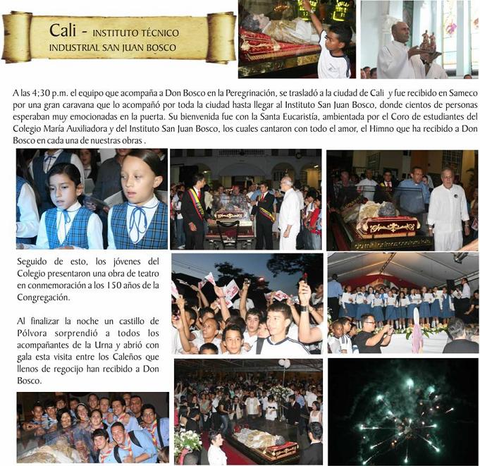 El recibimiento en nuestro colegio Salesiano "San Juan Bosco" y en el Instituto Técnico Industrial San Bosco de Santiago de Cali.
