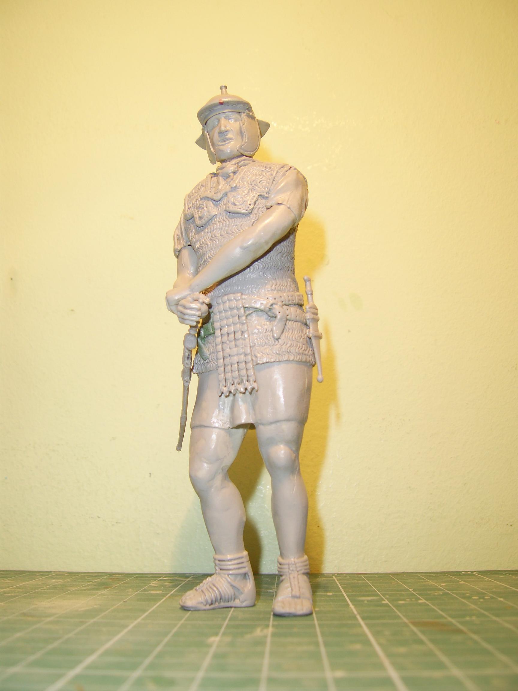 gracias esta hecho integramene por mi, esta foto es la copia de resina del original. Del original que he usado 4 tipos de masillas, porque cada una tiene diferentes propiedades yel esqueleto es de alambre hice un molde de silicona i ahora saco copias con resina, muy artesalmente. Mi intencion es verderlas en el foro pintadas o sin pintar con diferentes complementos, escudo , pilum, con casco o sin el... estoy haciendo la pareja.
