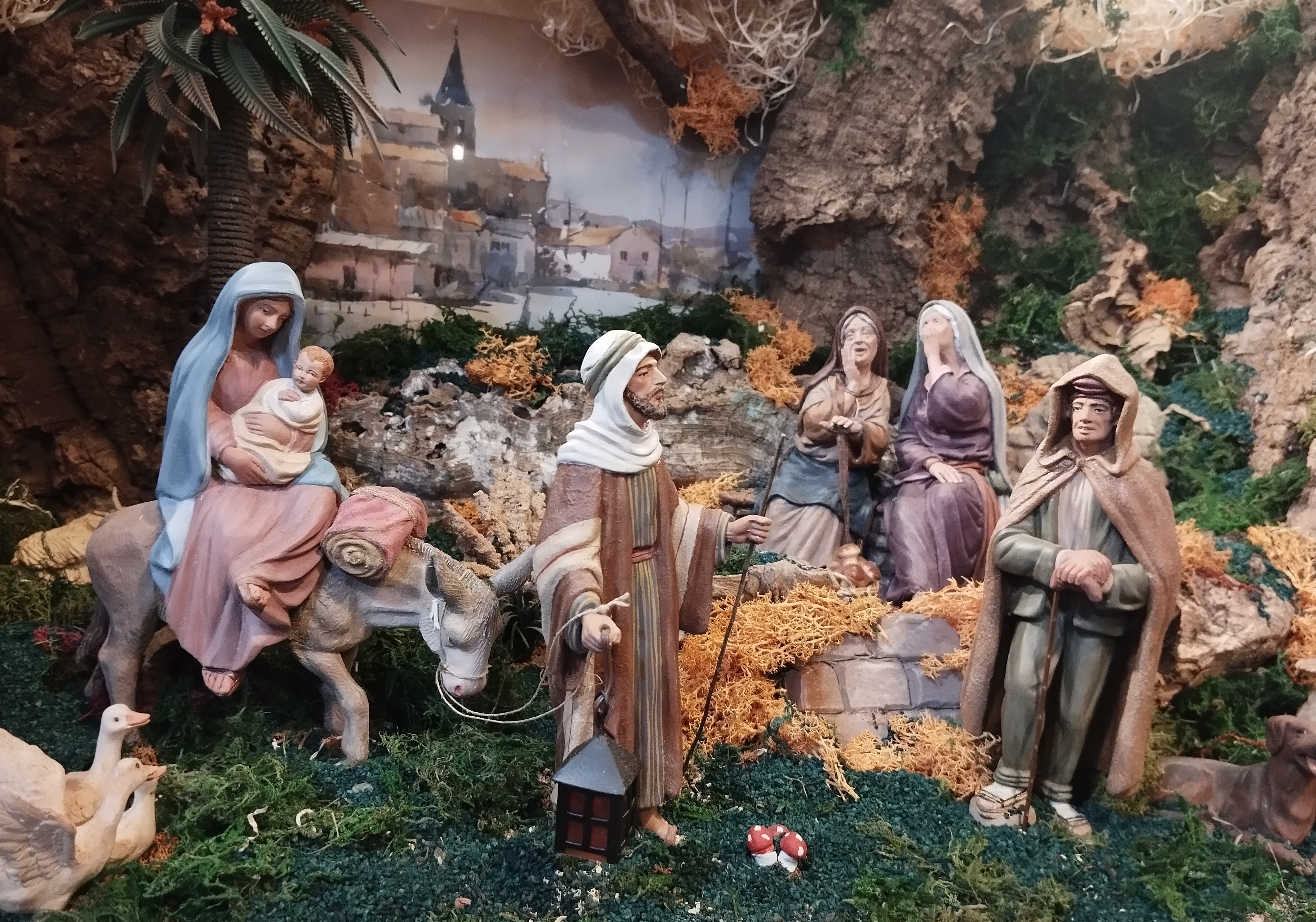 Belén superexpress que hice en veinticinco minutos copiando la técnica de Félix de poner un cuadro de fondo. El cuadro es un regalo de una encantadora clienta que, cuando me lo regaló, le vi enseguida las posibilidades y le dije que lo pondría en mi belén de este año, lo que le hizo mucha gracia.