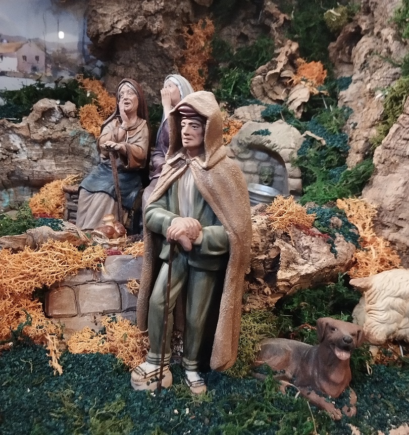 Aunque sea una Huida, la clave de este belén son las "cotillas" del segundo plano (deberían ser de un tamaño más pequeño, pero es lo que hay) que le dan un toque diferente a la escena, menos dramático y épico para ser como un acontecimiento menor, cotidiano, de una pareja de dudosa reputación que se escapa del pueblo al alba... figuras espléndidas de Dani Alcántara.