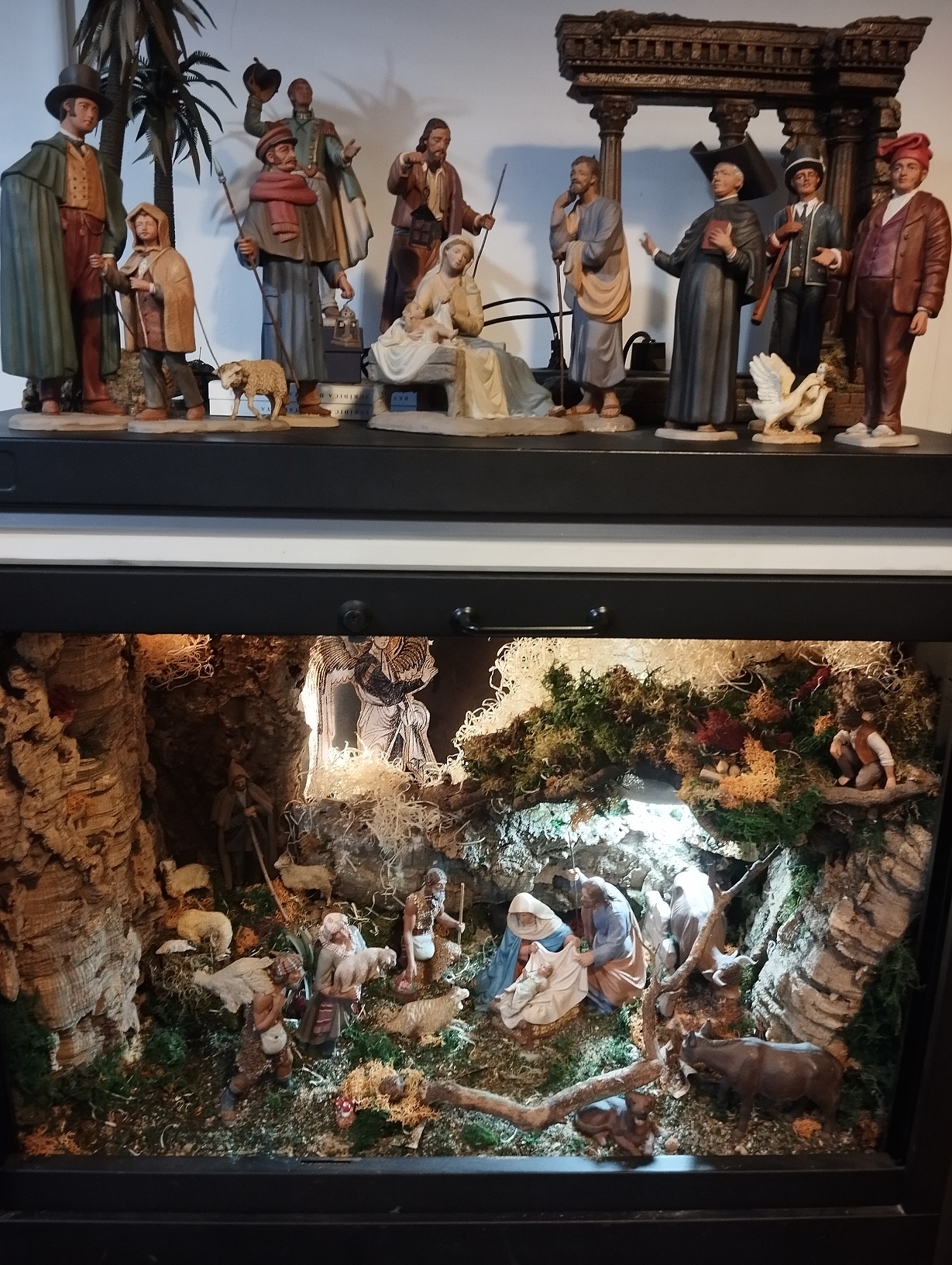 La exposición superior, el nacimiento, molde antiguo de Castells, el resto, las figuras de Joan Castells para la escena de "Per Nadal, cada ovella al seu corral"