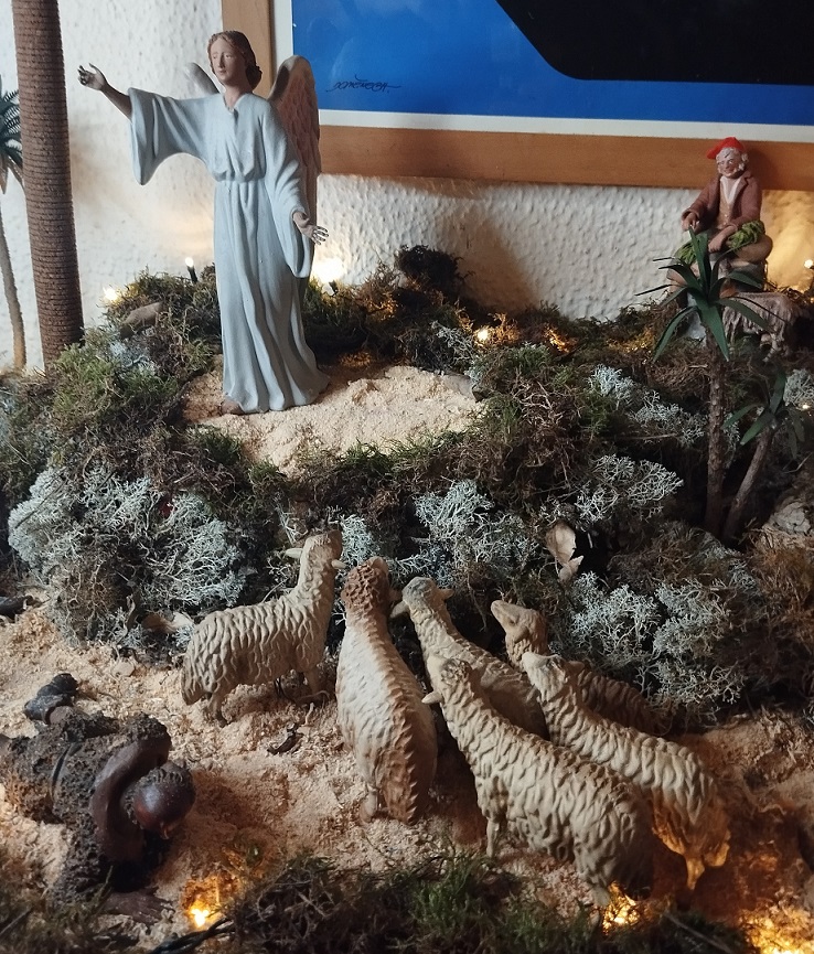 Lo que más me gusta de las dos escenas son las ovejas agrupadas mirando embelesadas al ángel.