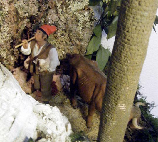 La cueva está llena de humildes presentes, que los belenitas (unos figuras) han ido trayendo. Todavía están en la puerta la Paquita y su marido, "el de la Paquita" y acaba de llegar un personaje misterioso, el pastor Silvano, que reside arriba de todo del monte, escondido en los pastos superiores rodeados de bosque, protegido por su enorme perro y siempre rodeado de su ganado. No ha dicho una palabra, lo suyo no es hablar con las personas, pero su corazón repite en su interior la canción que hace un rato le cantó el ángel que le conminó a bajar a la tierra baja: "Gloria a Dios en el cielo y paz para los hombres de buena voluntad".