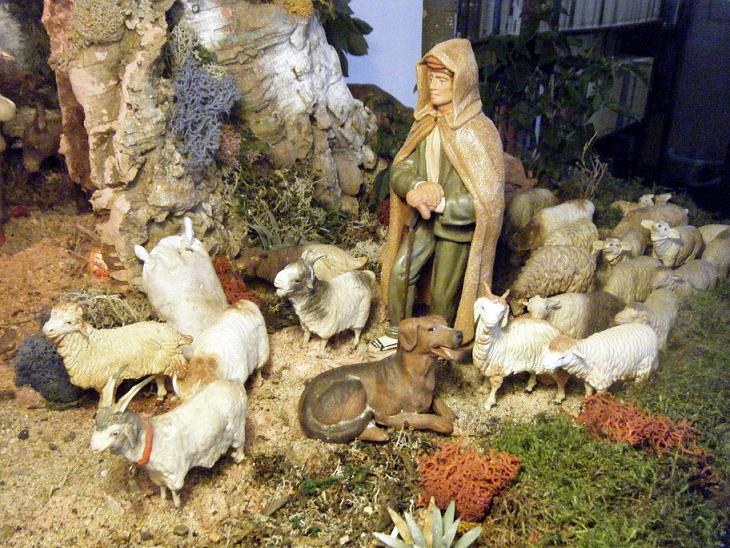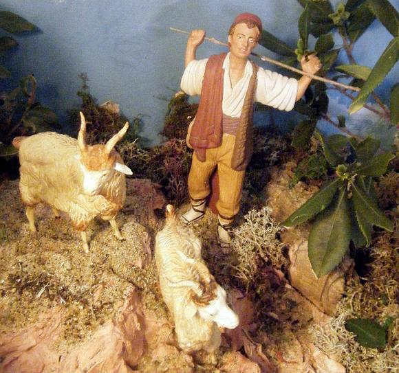La cueva está llena de humildes presentes, que los belenitas (unos figuras) han ido trayendo. Todavía están en la puerta la Paquita y su marido, "el de la Paquita" y acaba de llegar un personaje misterioso, el pastor Silvano, que reside arriba de todo del monte, escondido en los pastos superiores rodeados de bosque, protegido por su enorme perro y siempre rodeado de su ganado. No ha dicho una palabra, lo suyo no es hablar con las personas, pero su corazón repite en su interior la canción que hace un rato le cantó el ángel que le conminó a bajar a la tierra baja: "Gloria a Dios en el cielo y paz para los hombres de buena voluntad".