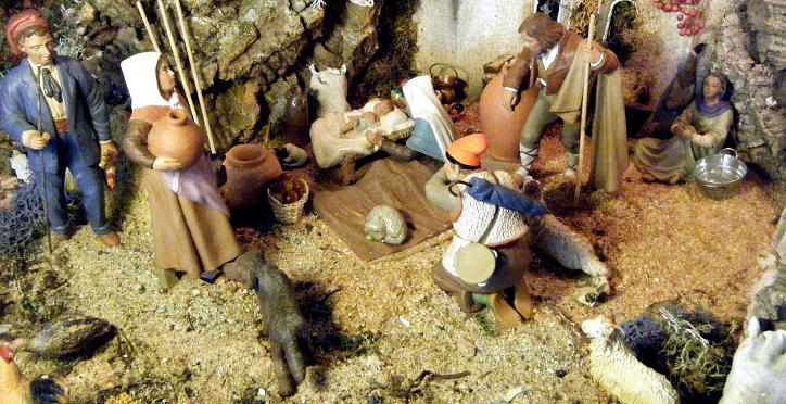 La cueva está llena de humildes presentes, que los belenitas (unos figuras) han ido trayendo. Todavía están en la puerta la Paquita y su marido, "el de la Paquita" y acaba de llegar un personaje misterioso, el pastor Silvano, que reside arriba de todo del monte, escondido en los pastos superiores rodeados de bosque, protegido por su enorme perro y siempre rodeado de su ganado. No ha dicho una palabra, lo suyo no es hablar con las personas, pero su corazón repite en su interior la canción que hace un rato le cantó el ángel que le conminó a bajar a la tierra baja: "Gloria a Dios en el cielo y paz para los hombres de buena voluntad".