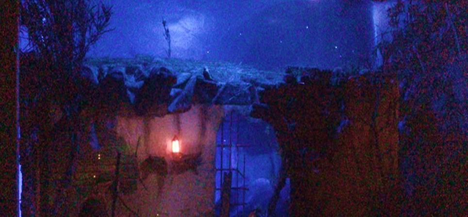 el celaje es un papel, haciendo forma curva de unos 150 gramos de grosor, y la bombilla que ilumina detras de la casa esta a unos 5 cm de donde salen los cables.