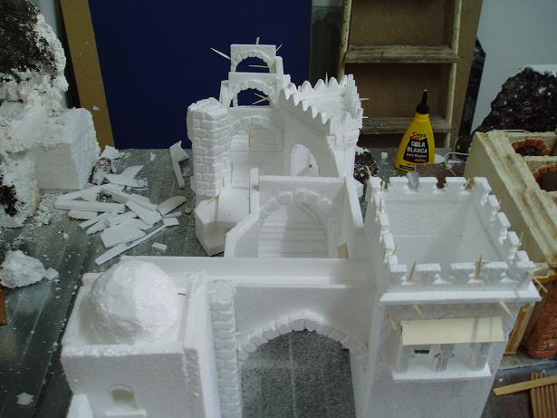 Al leer tu mensaje me figuro que es como hacer y pintar las casas. Yo la hago de poresrpan, glascofoan o como lo quieras llamar, lo que popularmente se llama corcho blanco que lo hay de muchas clases, calidades y precios y colores. Una vez construida la casa dale pintura de revestimiento de fachadas, es mucho mas comodo y limpio que la escayola que mancha muchisimo y , para mi , mucho mejor, luego pinta con pintura hidralux. Esta pintura es muy rapida de secado y facil de manejar; tiene un inconveniente, si le echas mucha agua con el tiempo se pudre, por lo demas fenomeno. Para pegar las casas con el porespan utiliza cola rapida de pioliuretano, esta cola es como la de los parches de bicicletas.