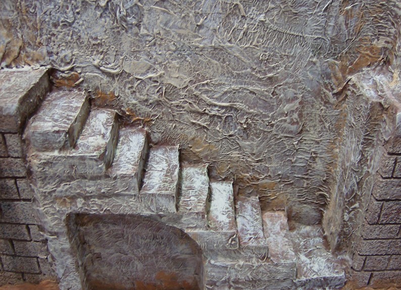 Me gusta la textura que consigues en los muros con el papel. Conocía esa técnica para hacer rocas pero no me había planteado la posibilidad de utilizarla también en muros cuando no tienes poliestireno de alta densidad.