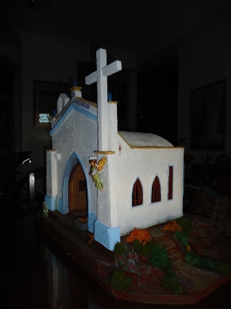 Aunque no es un edificio típico de los que se suelen ven como Ermitas....ya que es pelín moderlo....he aprovechado para reproducirlo en casa del abuelo Pepete, ya que el no puede subir a la montaña donde está ubicada la Ermita... "Si el abuelo no va a la Ermita, la Ermita va a el abuelo", je, je.