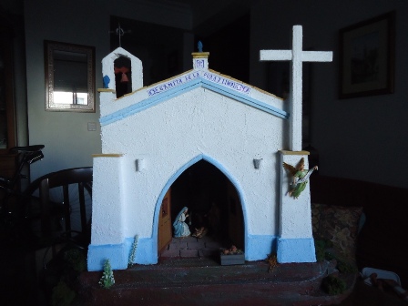 Aunque no es un edificio típico de los que se suelen ven como Ermitas....ya que es pelín moderlo....he aprovechado para reproducirlo en casa del abuelo Pepete, ya que el no puede subir a la montaña donde está ubicada la Ermita... "Si el abuelo no va a la Ermita, la Ermita va a el abuelo", je, je.