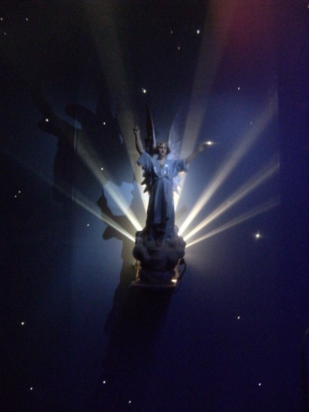 Hola, al hilo del paso a paso de los haces de luz del ángel, quiero mostrar la iluminación que he podido ponerle al ángel, he tenido muchas dificultades para orientar el cañón de luz a la cara, he utilizado 3 leds de alta luminosidad, unidos, dentro de un cilindro de cartón a modo de cañón y colocados donde el maestro Geni me sugirió en la instalación de luces intermedias de las fases dia-noche, por la distancia y la posición de estas luces el ángel no recibe la intensidad de luz que quería, pero, ya no está tan oscuro. Espero sus comentarios y gracias a todos por sus ayudas y sugerencias,