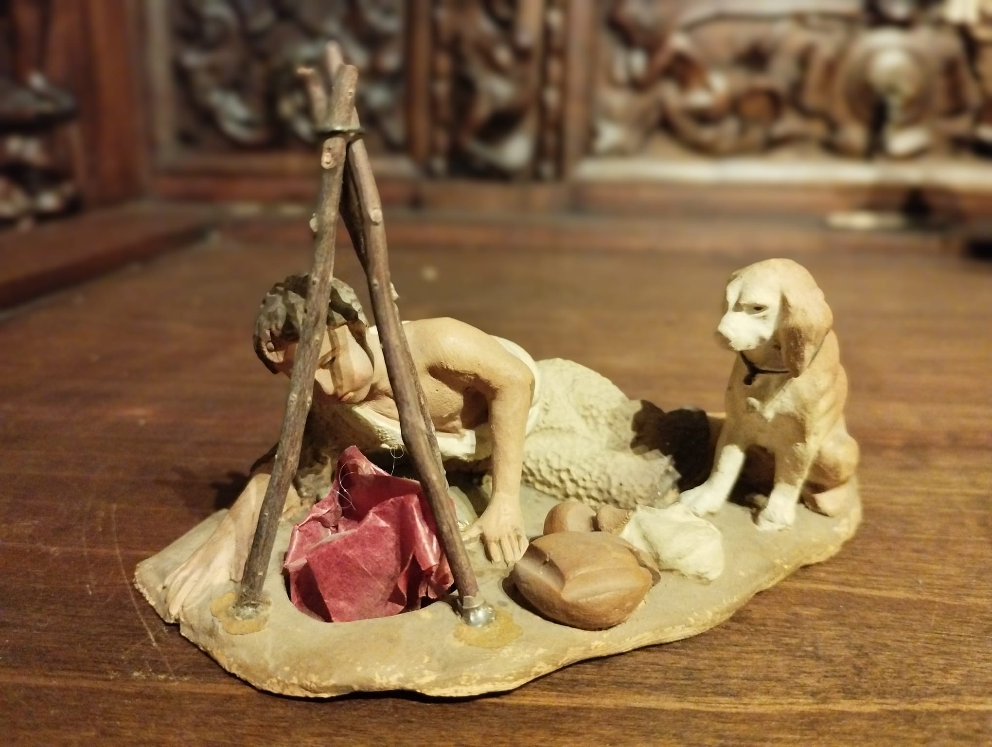 En los detalles se aprecia la maestría en el modelado y aprovecho para revindicar al Avi, particularmente en figuras como esta de mayor tamaño en barro, lo que probablemente refleja su experiencia en el campo de la imaginería religiosa a principios del siglo XX.