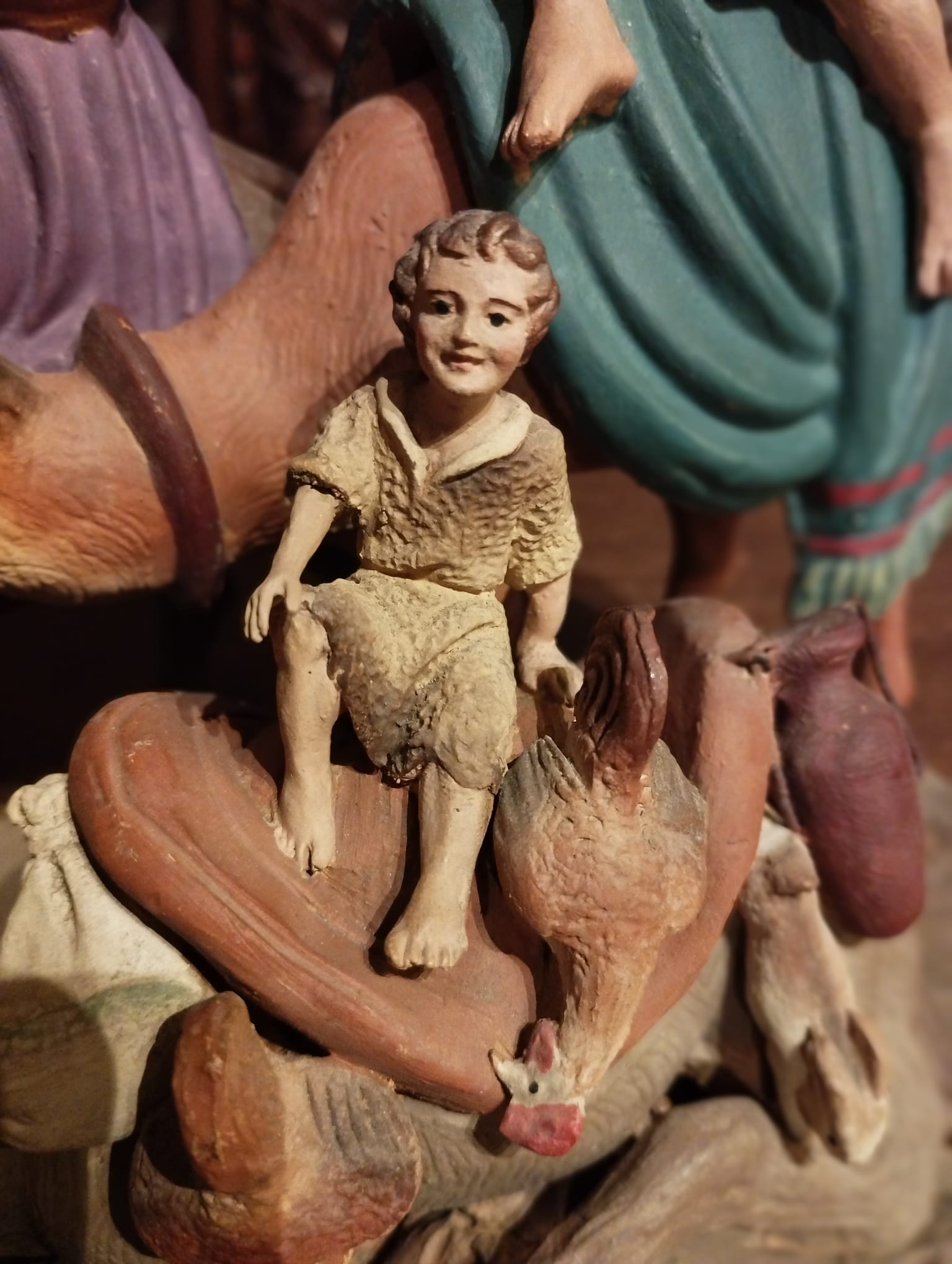 En los detalles se aprecia la maestría en el modelado y aprovecho para revindicar al Avi, particularmente en figuras como esta de mayor tamaño en barro, lo que probablemente refleja su experiencia en el campo de la imaginería religiosa a principios del siglo XX.