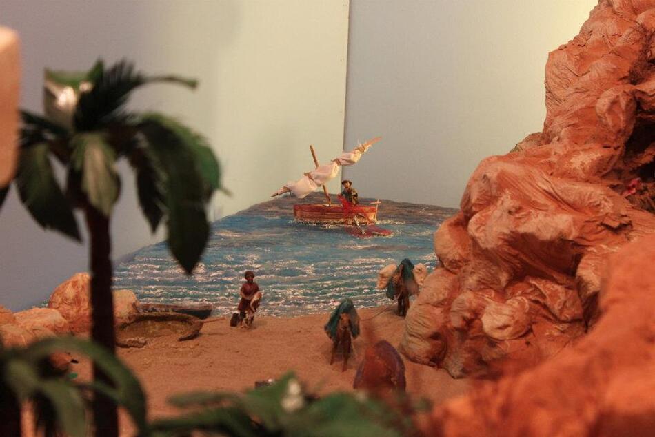 Bonito Belen con ese mar de fondo y la estructura de las casas estupendas felicidades y feliz año