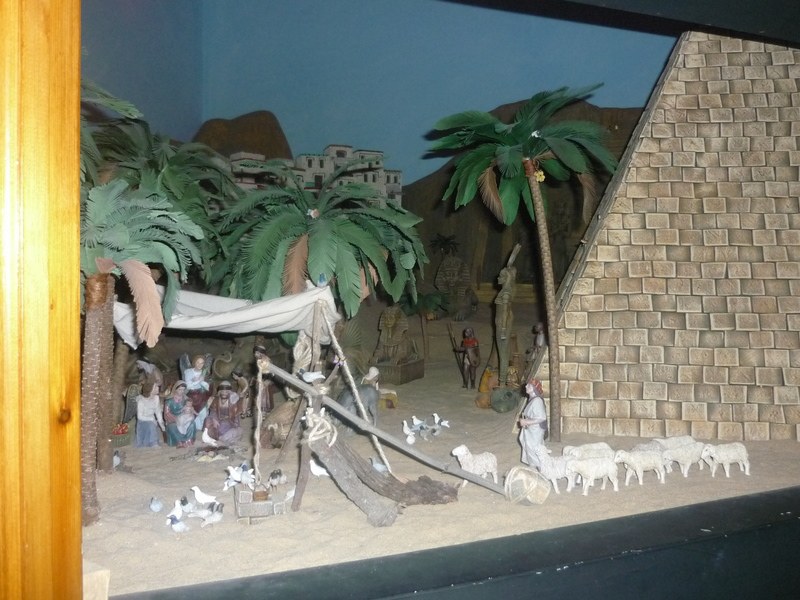 Vaya belen piña si has hecho todo lo que se ve ya te lo has currado, aunque te dire que este belen es para mayores de 18 años con esas egipcias tan provocativas jejejejejej (es broma).Un belen muy bonito y bastante grande por lo que se ve, el pueblo está muy bien parece que estes viendo un pueblo de verdad, y el palacio egipcio precioso y las esfinges !vaya tela!, beno te voy a poner una pega, hay una palmera que le has cortado las hojas mal jejeje es broma.Muy bonito el belen felicidades.Un saludo