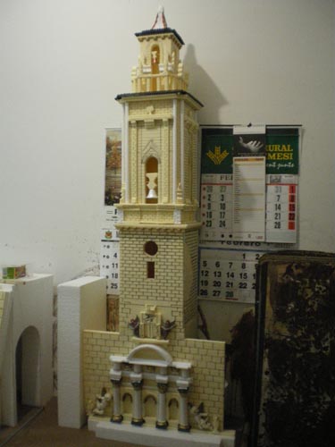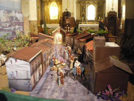 Adjunto algunas fotos con el resultado final. No son muy buenas por falta de luz, pero creo que se puede ver el final del trabajo. Como curiosidades, podéis ver que los fondos son fotografías de la plaza mayor y la calle Montaña que es la entrada a la plaza, en el caso de la iglesia, y de una panorámica de Algemesí en el caso de la muy querida por todos los Algemesinenses, Calle Berca. Para la construcción de las casas de esta popular calle (es por donde discurre la "procesoneta del matí" el 8 de Septiembre, fiesta de la "Mare de Deu de la Salut" pongo enlace para los que quieran conocer más sobre este otro asunto http://www.algemesi.net/Default.asp?DocID=1156 ) se han utilizado fotografías reales de las casas y se han pegado sobre las diferentes casas de cartón que se han realizado. Tambíen se pueden ver la pared de "Pardines" y la pared de "Cotes", antiguos asentamientos de los cuales solo queda lo que se ve, las dos paredes y donde se ha situado la Anunciación a los pastores. También hay un tramo de la "Acequia Real del Jucar" y como no, la vegetación es autóctona, con naranjos como árbol principal.