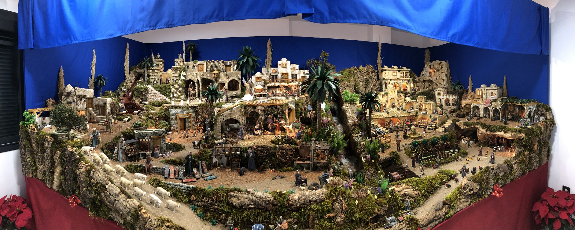 Hola Benjafru y Feliz Navidad. Muchas gracias por tu palabras. Este año ocupa unos 13 metros cuadrados. El numero de figuras no te lo podría decir porque ni yo mismo lo sé, pero como habrás podido ver son muchisimas .... Empecé con figuras de 11 cm en el año 2000 y en el 2014 decidí pasar a figuras de 19-20 cm de Hermanos Cerrada, Jose Angel Oviedo, Monserrat Ribes y Jose Luis Mayo.
