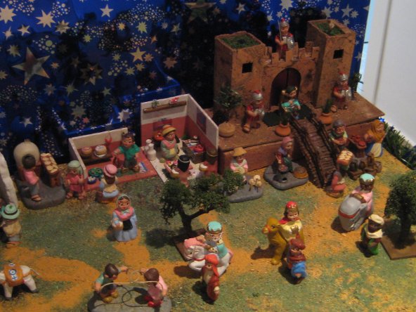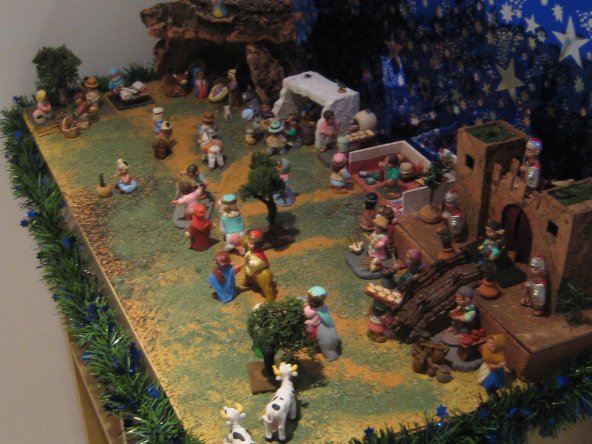 Pilar, es un belen encantador, de tal palo tal astilla, jajja, está bien transmitir las tradiciones a nuestros hijos, y así de generación en genaración nunca se perderá esta maravillosa afición nuestra que recogimos de nuestros padres, al menos ese fue mi comienzo, ayudando a mi padre a poner la nieve con harina en las montañas y mover todos los dias los REyes Magos, sencillos, sin luces pero con mucho amor.... !!que tiempos más felices"a él le debemos este bendito amor por el nacimiento, y que dure muchos años.