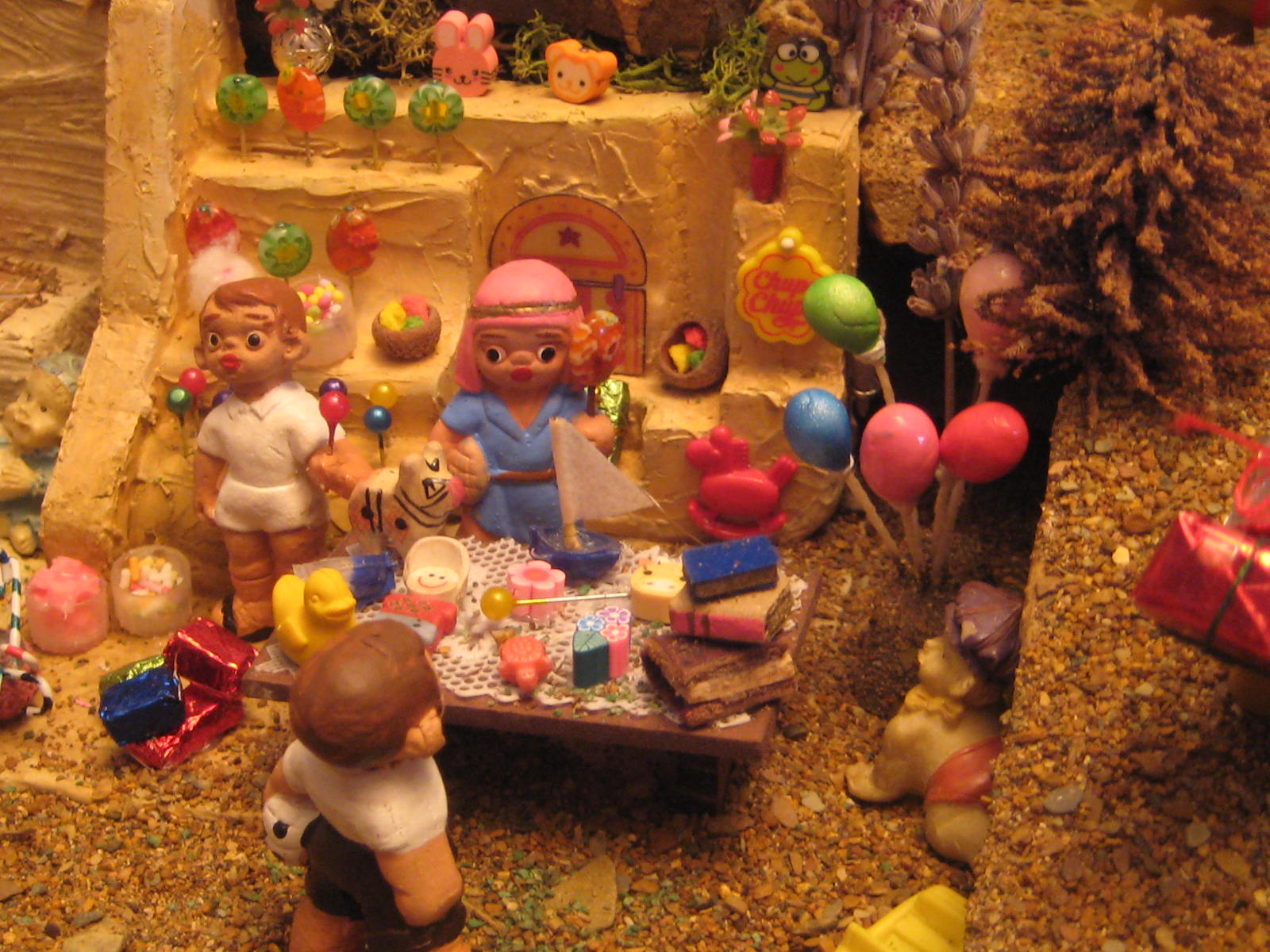Es colorido, alegre y con muchísimos detalles que lo llenan de vida. Y tiene mérito, ues lo trabajas,para un tamaño mucho menor que la mayoría de los belenistas.