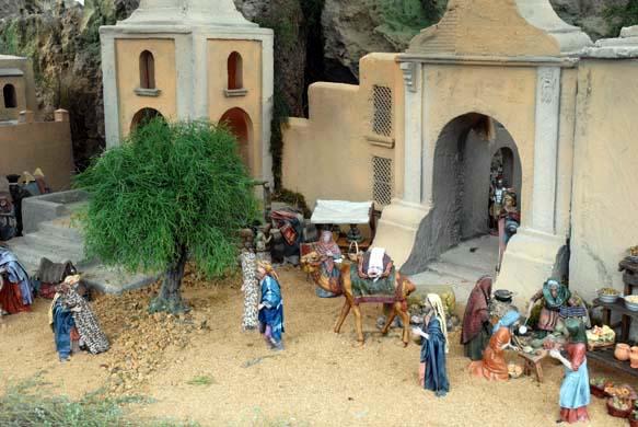 Más de 1.000 figuras ambientan este Nacimiento en el que no faltan, además de las figuras centrales, detallados mercados con delicados enseres, cestas y puestos de frutas, fuentes y ríos en miniatura o elaboradas imitaciones de animales.