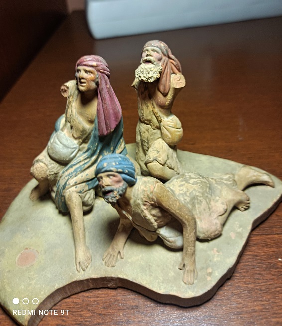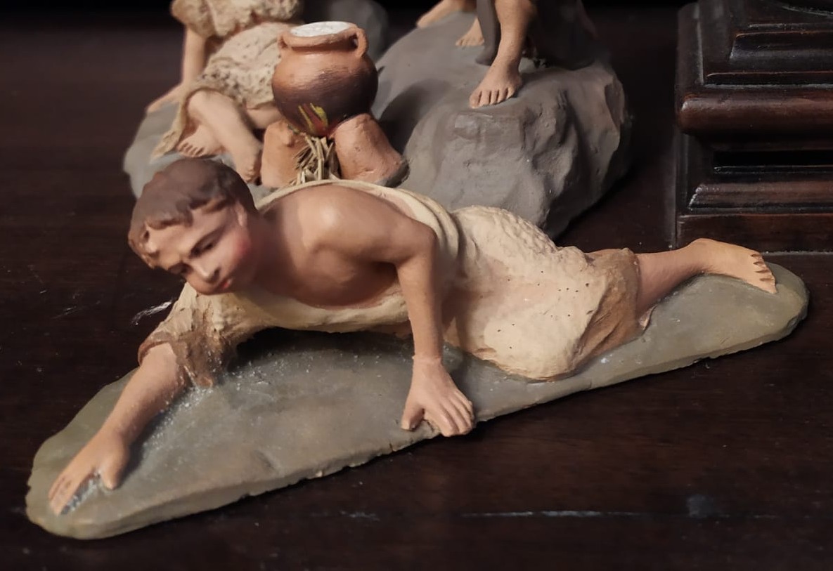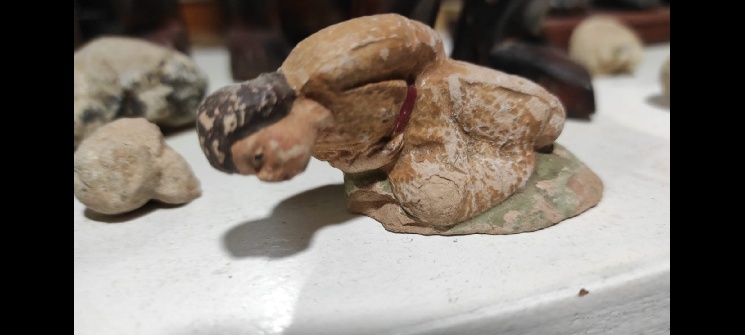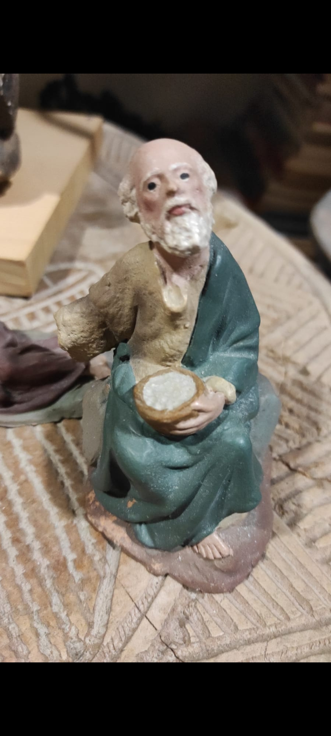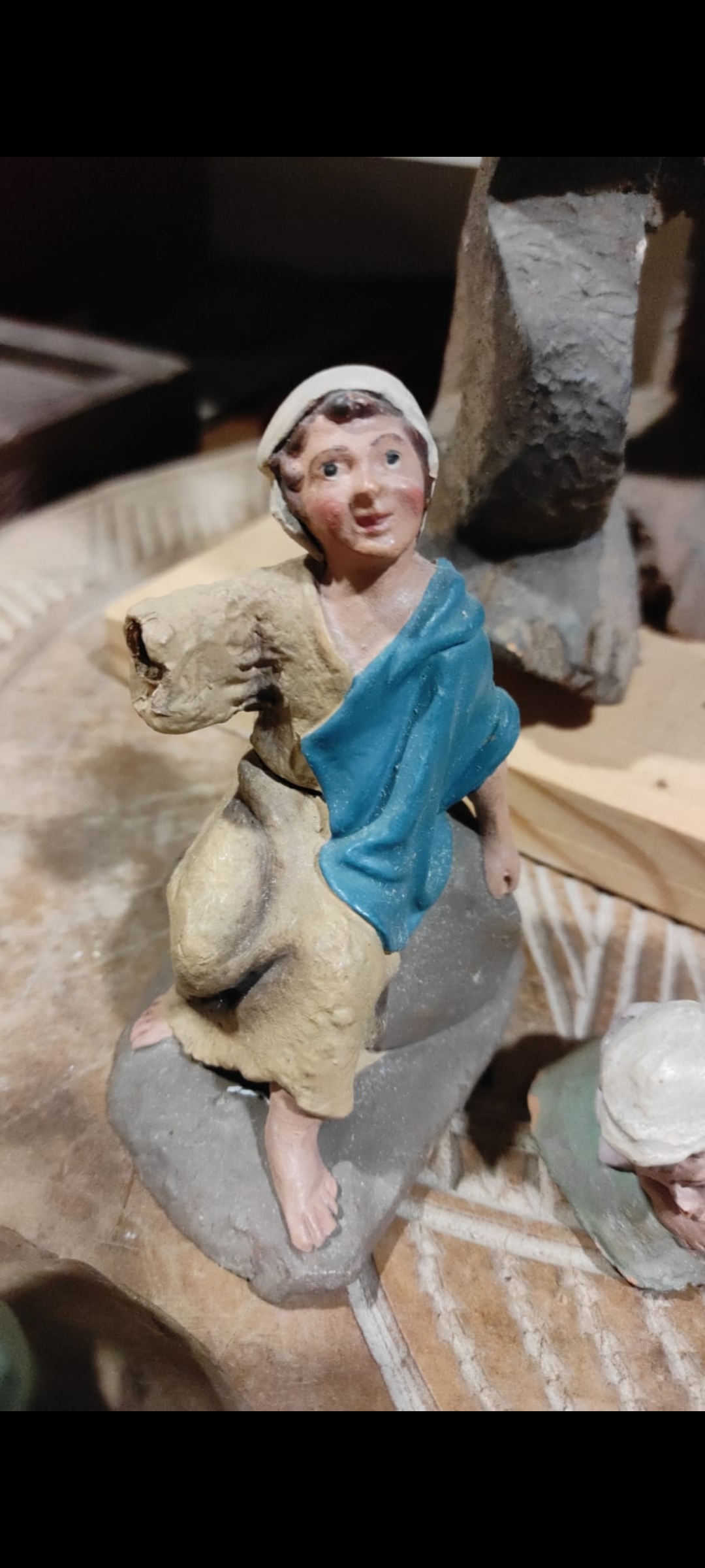El Pessebre Amades pastor corta pan.jpg (169KB - 96 descargas)Sería buscar no sólo al pastor que sabemos que pertenece al grupo de la anunciación también figuras que podrían ser ese personaje con esa función y que podría forma parte de una anunciata. A lo mejor no son cuatro hilos y los simplificamos(por ejemplo el que se sorprende y el que señala pueden estar en uno, al fin y al cabo son variantes...) y también en cualquiera de ésos hilos introducir curiosidades o el grupo completo por algún motivo, no cerrarse a nada, por ejemplo los H. Castells los reunieron a los cuatro(con ángel).