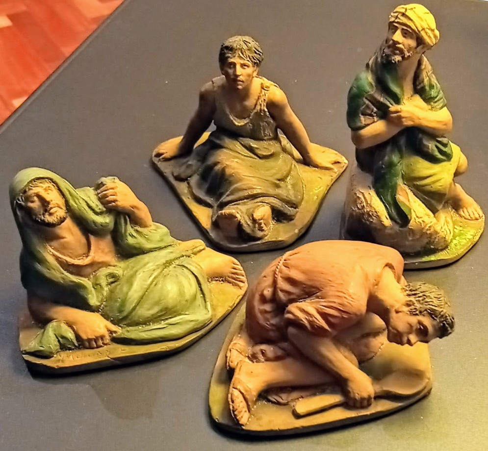 el que se sorprende, el que sopla(el bufador de Fra Valentí), siempre hay uno que trabaja que lo llamo el que cocina (el del alioli que también puede ser el que corta el pan, "El Pessebre", Amades) y el cuarto el que señala,