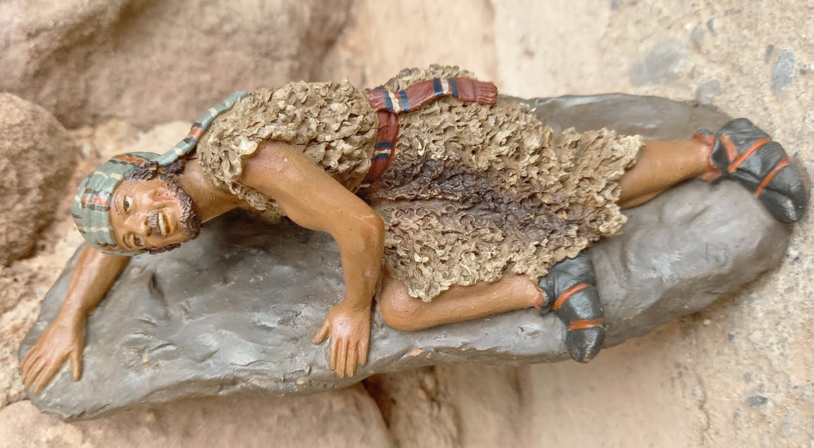 El Pessebre Amades pastor corta pan.jpg (169KB - 94 descargas)Sería buscar no sólo al pastor que sabemos que pertenece al grupo de la anunciación también figuras que podrían ser ese personaje con esa función y que podría forma parte de una anunciata. A lo mejor no son cuatro hilos y los simplificamos(por ejemplo el que se sorprende y el que señala pueden estar en uno, al fin y al cabo son variantes...) y también en cualquiera de ésos hilos introducir curiosidades o el grupo completo por algún motivo, no cerrarse a nada, por ejemplo los H. Castells los reunieron a los cuatro(con ángel).