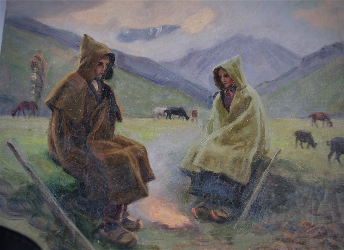A partir de este fragmento del óleo de Dionís Baixeras surge la idea que inspira el encargo y posterior interpretación de Font y Baldrich del Silvano , una figura que se mimetiza con la tierra. Esta pastora, que da origen al arquetipo belenista, encarna la esencia de ese vínculo con el paisaje, razón por la que la denomino la ' mujer de las nieves ' :