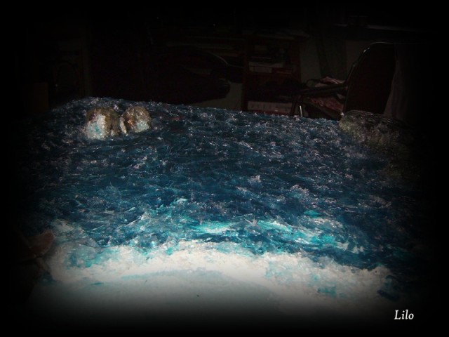 Bueno,atendiendo a la explicación que ha dado FabioWarrior sobre como realizó el efecto agua,he probado,ya que mi belén de este año está diréctamente relacionado con el mar, y he conseguido este efecto ,el color es un poco mas oscuro,se trata supuestamente de un trocito de mar,el método es el de la silicona aunque lleva algo de Vallejo tambien,cosa que ayuda,me queda definir un poco mas la orilla que se fundirá en la arena, espero os guste ,lo comparto por si ayuda en algo.saludiños