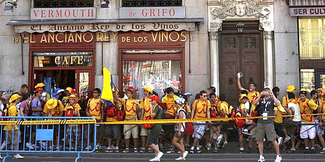 Impresionante. Desde que he llegado de vacaciones esta tarde nada podia hacerme tan feliz como el espectáculo en Madrid: todas la calles llenas de juventud, alegre , bajo un sol de campeonato. Hemos intentado comer algo rápido y estaba todo bloqueado por oleadas de jóvenes: en mi barrio todos extranjeros. Es la primera vez que no puedo ir a comer a un restaurante y salgo contento de no poder entrar siquiera, al ver a tanta juventud feliz y testimonial.