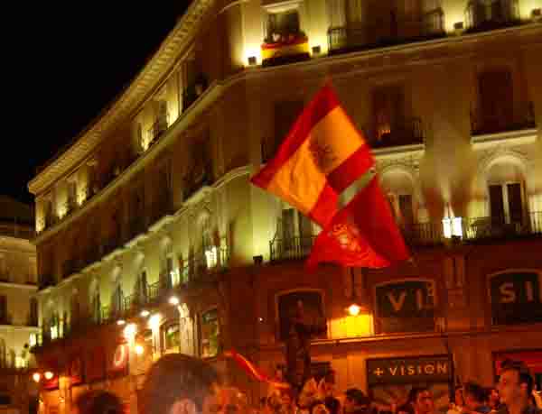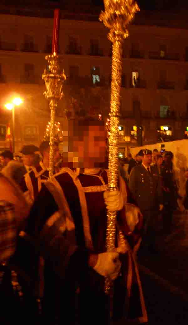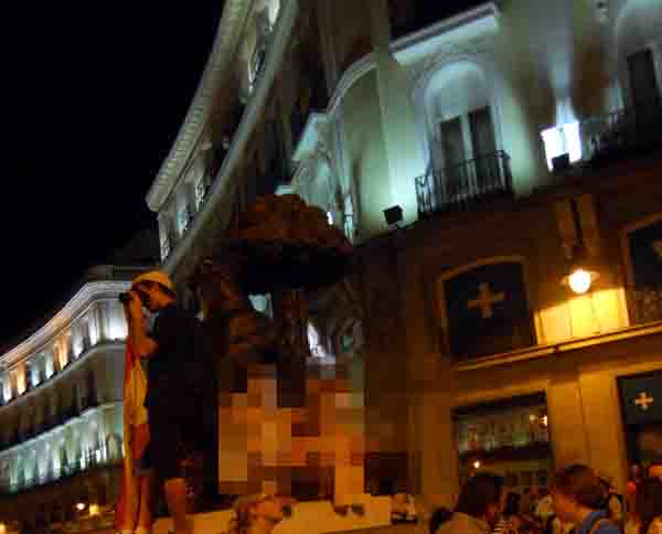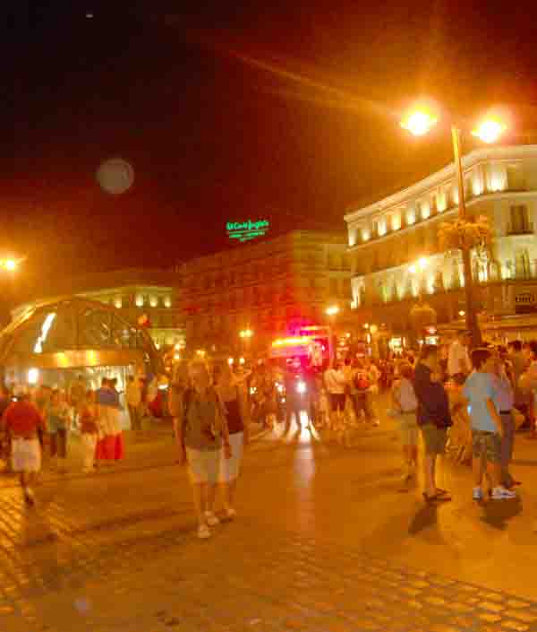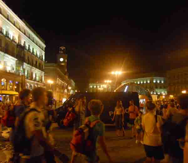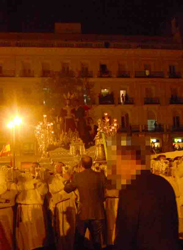 Las procesiones sufrieron un retraso al inicio ya que la Puerta del Sol estaba inestable . A duras penas y a base de un gran número de refuerzos, la Policía se las veía de todos colores para controlar una de las mayores y mejor organizadas manifestaciones ilegales, de cafres supongo, que, a modo de guerrilla, partieron de Atocha con 200 participantes y llegaron a ser 3000, rodeando Sol e intentando entrar en ella por todos lados. Y llegó un momento que la cosa no estaba muy clara que no lo consiguieran. Incluso por los Bulebares, que coincidencia, ¿recordáis quién vive allí?, intentaron descender hasta Sol. Su tremenda comprensión y respeto por las opiniones y creencias ajenas lleva a veces a estas cosas. Debe ser esto el Progresismo tan cacareado. Naturalmente varios grupos de JMJs salieron perjudicados, pero por suerte no han presentado denuncia alguna (los JMJs, claro).